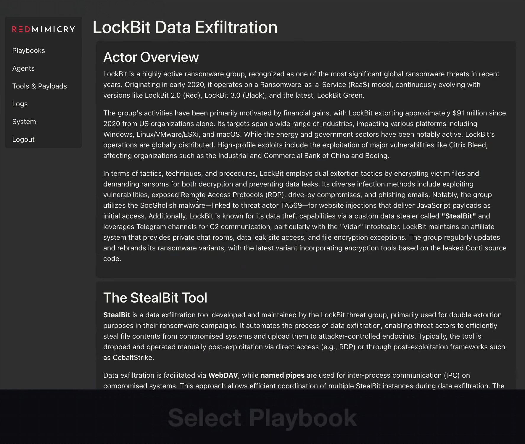Mit RedMimicry lassen sich mehrstufige Angriffsketten simulieren, die auf den Taktiken, Techniken und Prozeduren (TTPs) realer Bedrohungsakteure wie LockBit, Black Basta oder SPECTR basieren. Die Plattform erzeugt dabei authentische Telemetrie und forensische Artefakte, sodass Sie Ihre Verteidigungsmechanismen unter realen Bedingungen validieren können – von der Erkennung bis zur Reaktion.